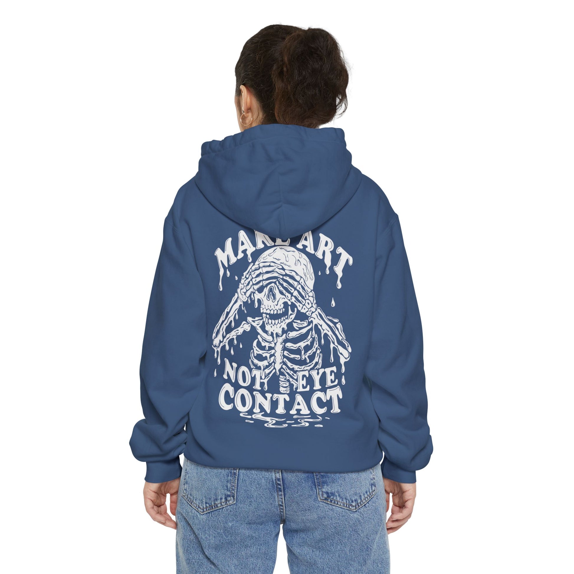 This unisex hoodie is made for artists, introverts, and anyone surviving burnout with humor and creativity. Featuring an original hand-drawn skeleton illustration, it’s a wearable reminder that art can exist without small talk.